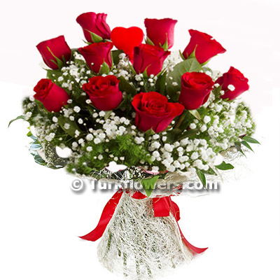 11 Adet Kırmızı gülden  oluşan Gül Buketi , Ürün Ambalajı yerel çiçekçilere göre değişebilmektedir..