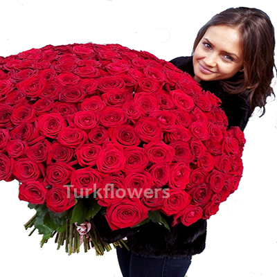 100 adet Birinci sınıf Kırmızı gülden oluşan Buket Add to cart and continue to send our flower to Germany  region.
