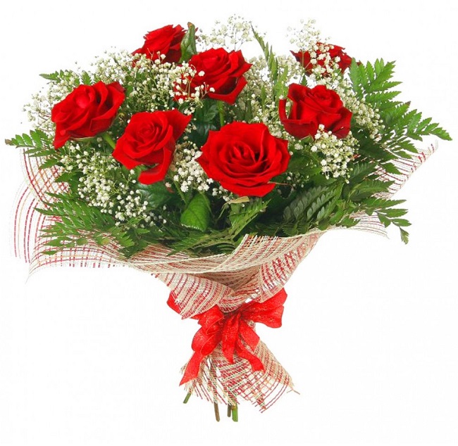 7 Adet Kırmızı Gül ve Cipsofilyalardan Oluşan Buket