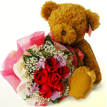 Ayıcık Kucağında 7 Adet Kımızı Gül Add to cart and continue to send our flower to Germany  region.