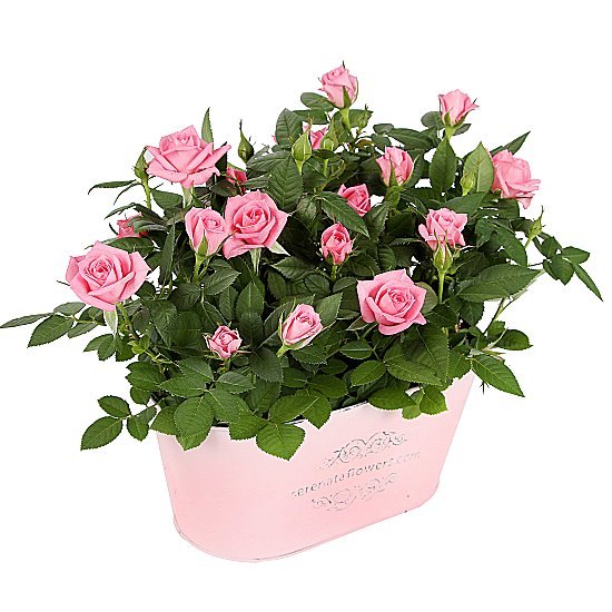 Dekoratif Vazo içerisinde mini Pembe saksı güller Add to cart and continue to send our flower to Germany  region.