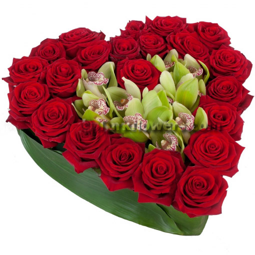 21 adet kırmızı gül ve 4 adet cimbidyum orkideden oluşmaktadır