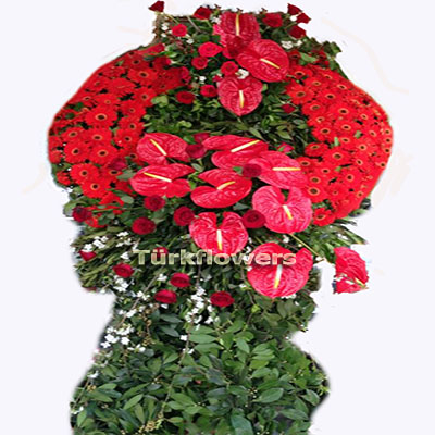 Kırmızı çiçeklerden oluşan cenaze çelengi Add to cart and continue to send our flower to Zambia  region.