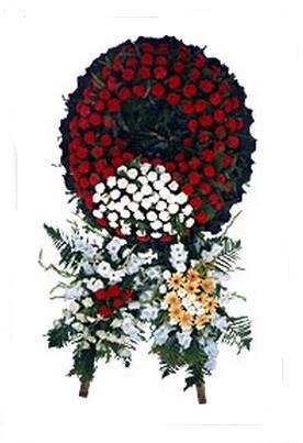 Kırmızı ve beyaz çiçeklerden oluşan cenaze çelengi ortalama boyutları 150x220