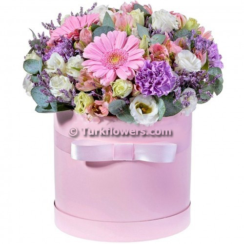 Bileşenler: Karton kutu , Lilyum, karanfil, Lusyentus, Okaliptus yaprağı