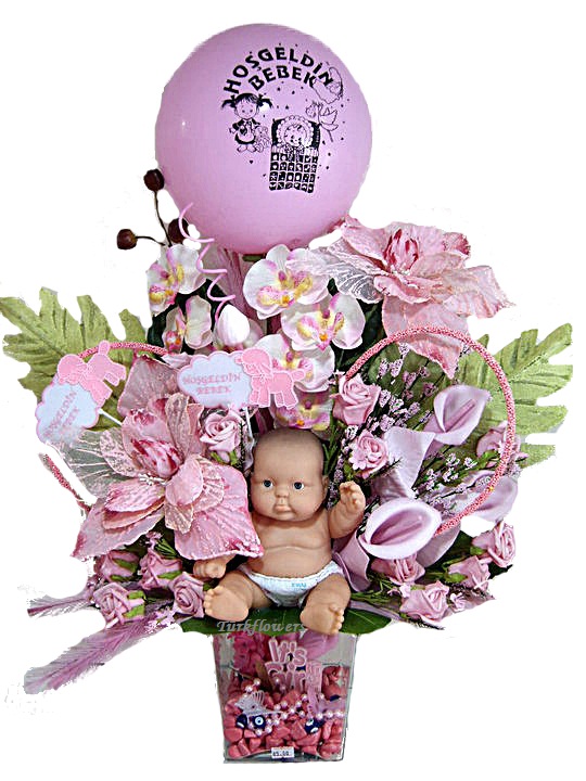 Yapay kız bebek doğum çiçeği Add to cart and continue to send our flower to Germany  region.