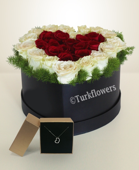 Kalp Kutuda Güller ve Kolye Add to cart and continue to send our flower to Serbia  region.