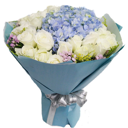 C Serbia  25 Beyaz gül ve ortanca buket