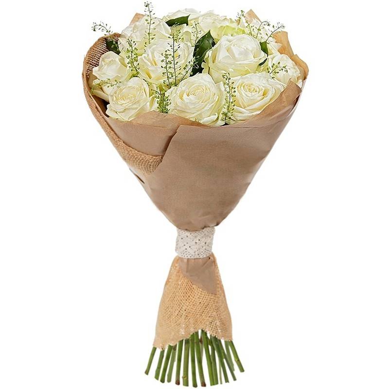 Expandable bouquet of white roses . Bouquet consists of at least 7 roses