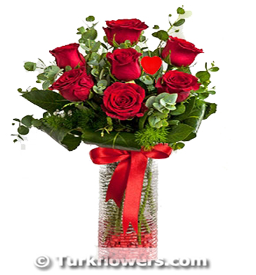 Cam vazoda 7 adet kırmızı gül Add to cart and continue to send our flower to Germany  cam region.