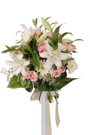 Lilyum ve mevsim çiçeklerinden oluşan buket