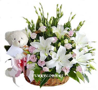 Lilyum , Lusyentus ve oyuncak ayıcıklı aranjman Add to cart and continue to send our flower to Batman  region.