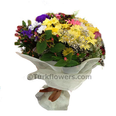 Lusyentus krizantem ve gerberalardan oluşan mevsim buketi Add to cart and continue to send our flower to Norway  region.