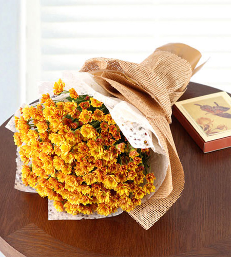 Ürün iki demet sarı renkli krizantemlerden oluşmaktadır , oartalama ürün boyutları yükseklik 55 cm genişlik 40 cm dir