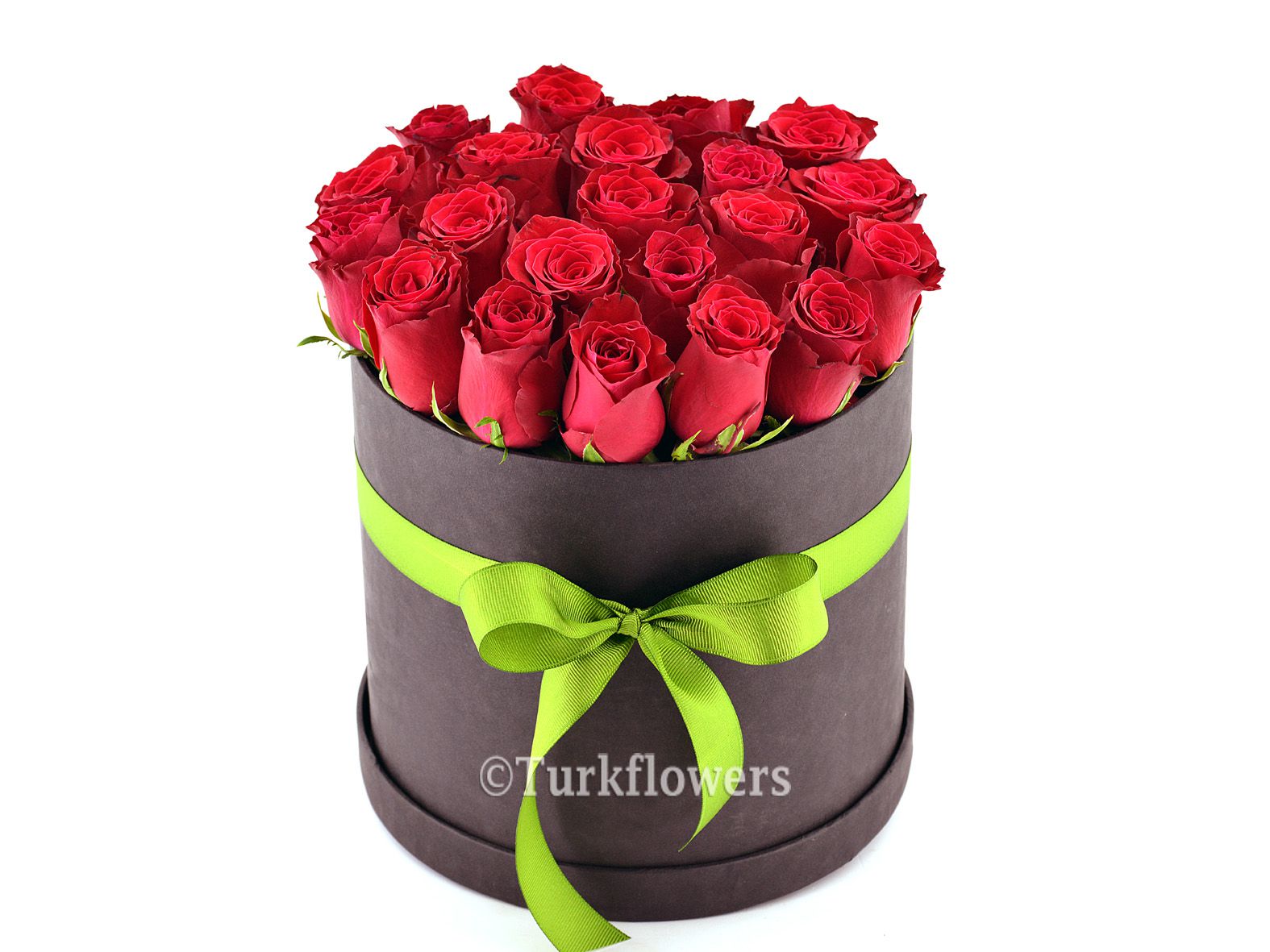 silindir siyah Kutuda 21 Adet Kırmızı Gül