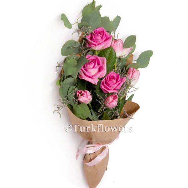 Lale ve Pembe Gül buketi