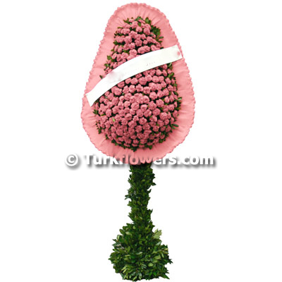 Footed Basket (Wreath) Model, consisting of pink flowers, which can be sent to weddings and openings. Average product dimensions are Height 220 cm Width 130 cm.