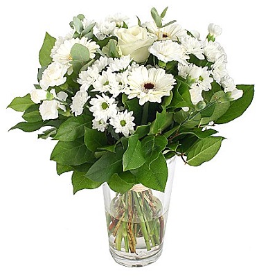 Beyaz Bulut Şeklinde , Beyaz papatya, karanfil,ve güllerden oluşan Ruh Dinlendirici Buket