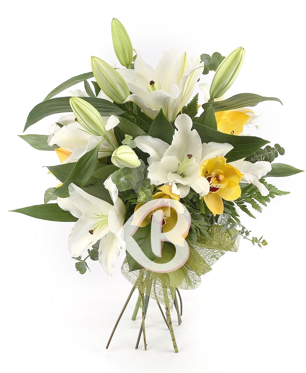 Ürün İçeriği: 3 beyaz lilyum. sarı Cimbidyum orkide