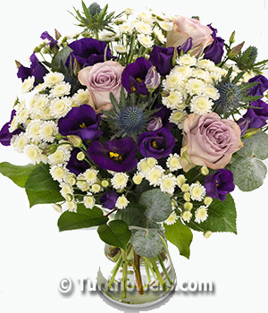 Product Image Used as Visual. Local florists will prepare the most beautiful flowers for you from Purple White and Lilac Colors . There may be differences in design.