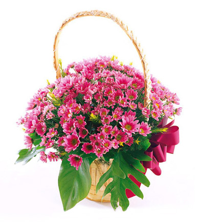 Sepet içerisinde pembe renkli krizantemler Add to cart and continue to send our flower to Honduras  region.