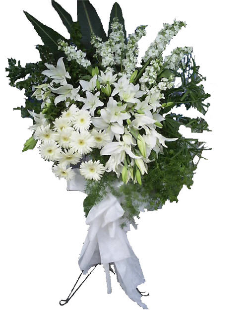 The product consists of 3 branches of white lilies, a bunch of wallflower, half a bunch of white gerberas and various green leaves, It is a type of arrangement that can be sent at weddings and openings, The name of the company or the person is written on it ... Average dimensions are 1 meter 70 cm wide 120 cm. Same day deliveries and wedding deliveries must be ordered at least 3 hours before ...