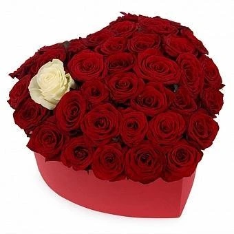 Ürün içeriği: kırmızı Güller, Tek Beyaz Gül ve kalp kutudan oluşmaktadır