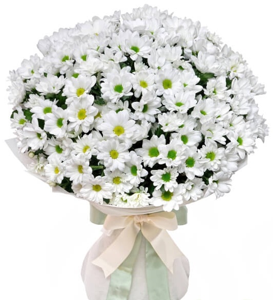 15 dal beyaz Krizantemden oluşan papatya buketi