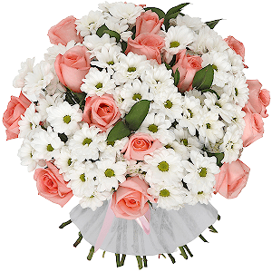 Kazakistan 15 Pembe gül ve 10 Dal beyaz Papatyalardan oluşan buket