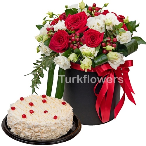 Added. Cylinder Box, Green leaf, hypericum and cake